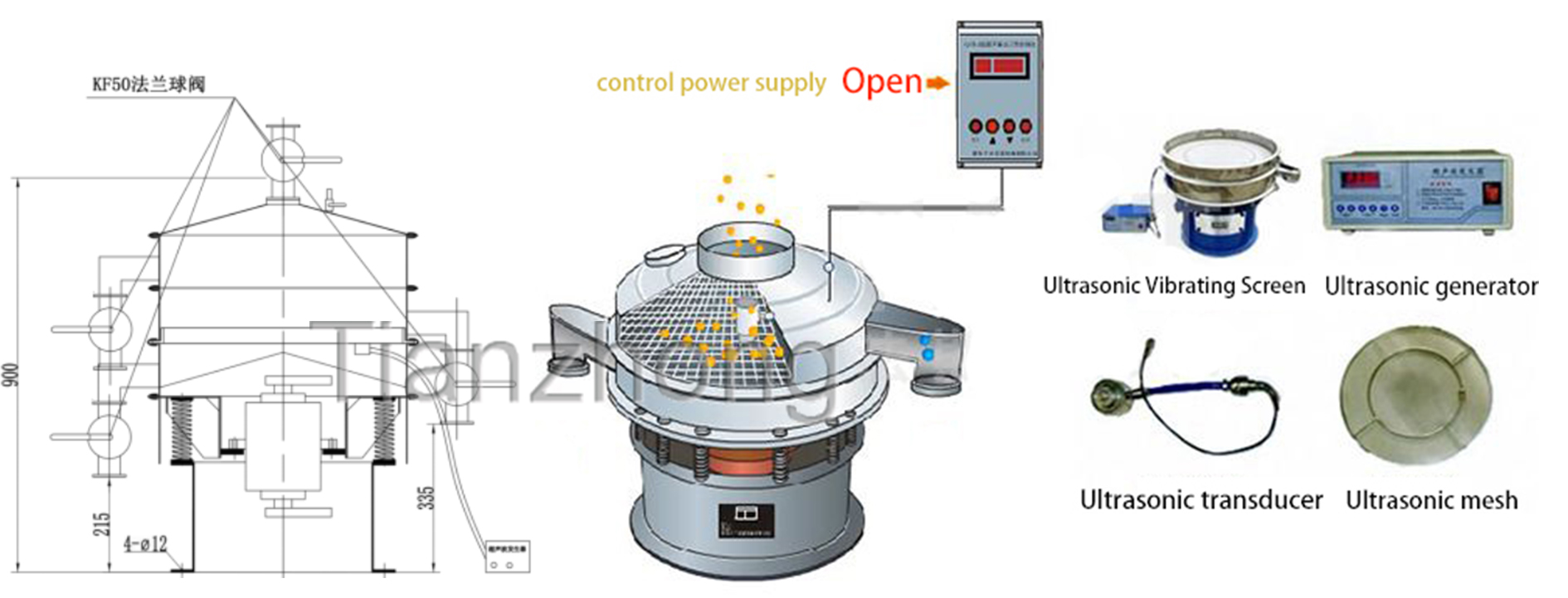 The vacuum-sealed screening machine(3D-printed titanium alloy ultrasonic vibrating screen) is a high-precision fine powder screening device featuring low noise, high efficiency, and a fully vacuum-sealed structure. It is suitable for screening materials like 3D printing powders that cannot come into contact with oxygen. The 3D-printed titanium alloy ultrasonic vibrating screen utilizes a vertical motor as its vibration source. Eccentric weights mounted at both ends of the motor convert its rotational motion into three-dimensional movement—horizontal, vertical, and inclined—which is then transmitted to the screen surface. Adjusting the phase angle at both ends alters the material’s trajectory on the screen. Simultaneously equipped with a high-strength external ultrasonic system, it features high screening and filtering precision with minimal mesh clogging. This effectively resolves screening challenges caused by agglomeration, static electricity, and strong adsorption blocking the mesh, significantly improving the first-pass clean rate and overall screening efficiency. It ensures long-term mesh unclogging during the screening process. Production rates can be substantially increased based on material particle structure. This ensures long-term high-efficiency screening while extending screen mesh lifespan. The equipment includes a reserved inert gas inlet for connecting inert gas to protect materials!
