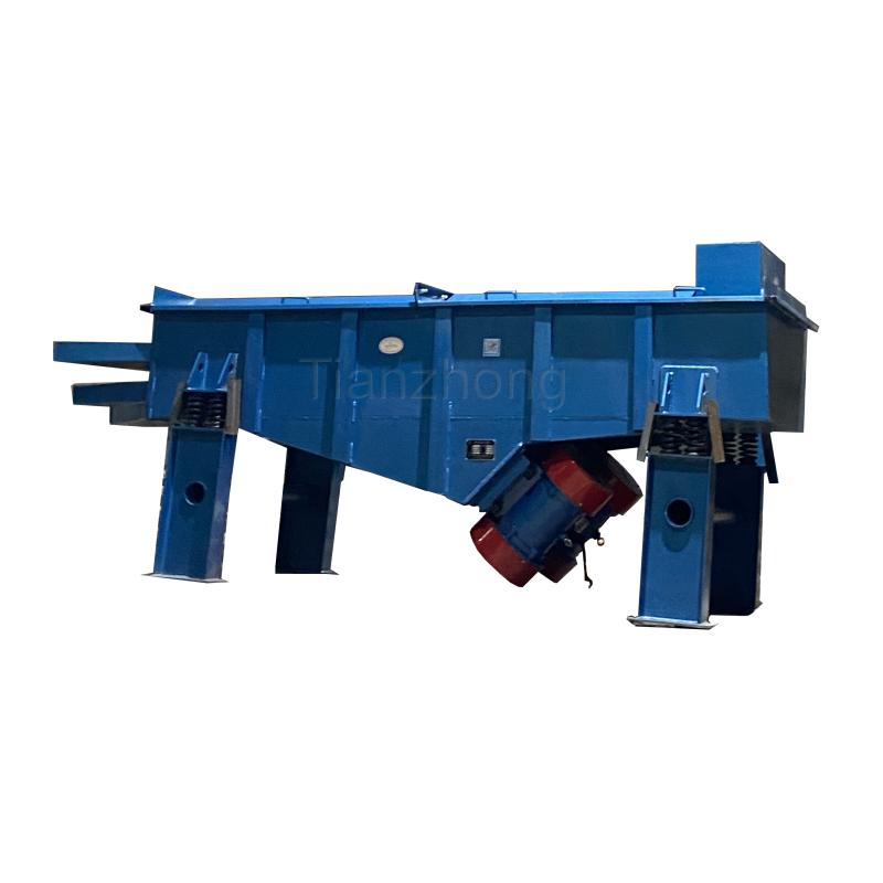 Specific structure: The linear vibrating screen primarily consists of a screen box, screen frame, screen mesh, vibrating motor, motor base, vibration-damping springs, and support frame.