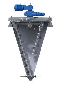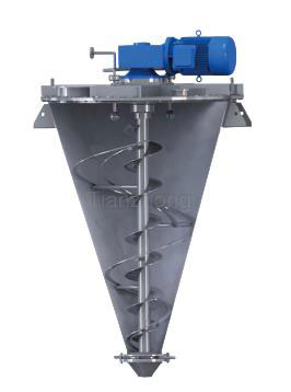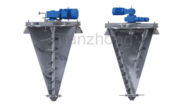 Standard products employ either two (one long, one short) or three (one long, two short) asymmetrical cantilevered screw arrangements based on equipment specifications. Through the rotational and self-rotational motion of these asymmetrical screws, materials are repeatedly lifted, generating composite movements such as shearing, convecting, and diffusing within the conical chamber to achieve uniform mixing.