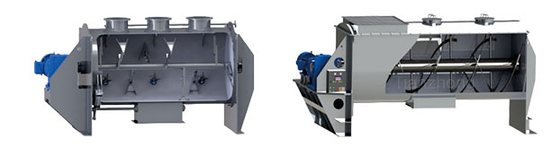Ribbon Structure: Typically comprising a central spiral ribbon and an outer spiral ribbon, both rotating in opposite directions. This design enables materials within the trough to undergo simultaneous axial and radial three-dimensional compound motion. A portion of the material is propelled towards one end while another portion is directed towards the opposite end, creating an efficient counter-current circulation mixing effect.