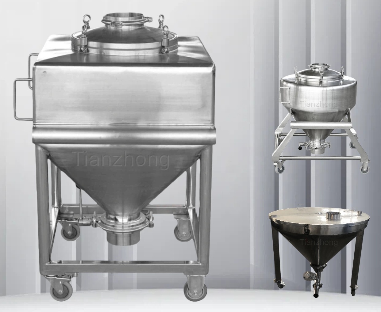 The turnover hopper serves as the major transfer container in solid dosage form production processes. It facilitates storage, transfer, and other processing operations for bulk materials in pharmaceutical, food, and chemical industries. It effectively prevents dust cross-contamination and fully complies with GMP requirements.